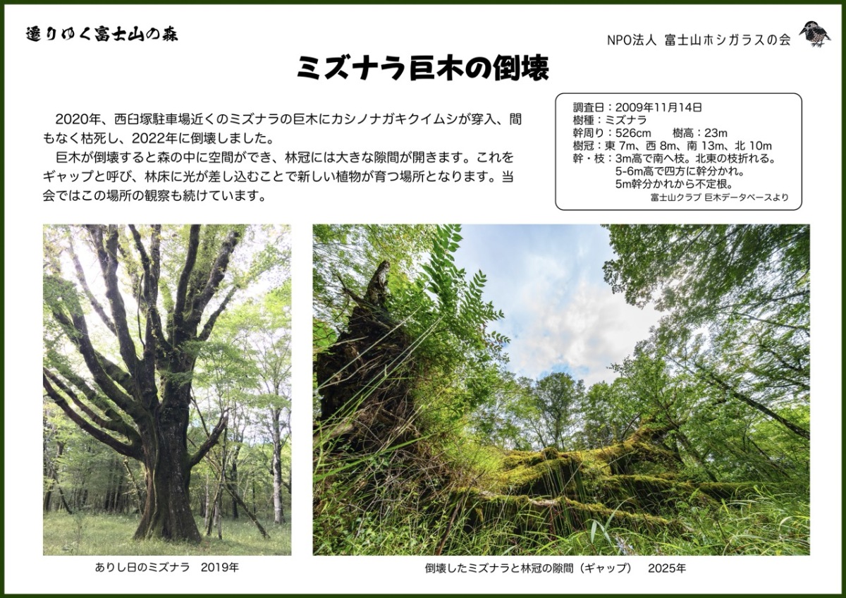 ミズナラ巨木の倒壊